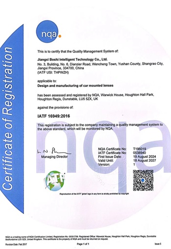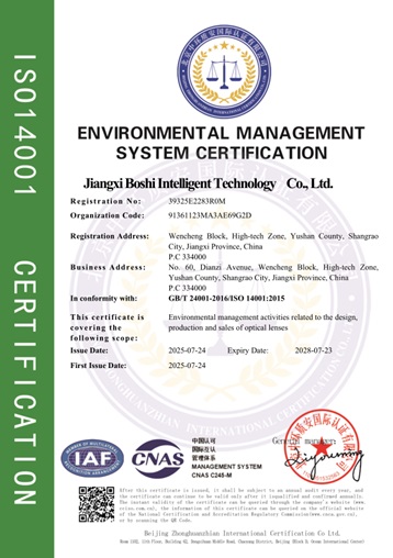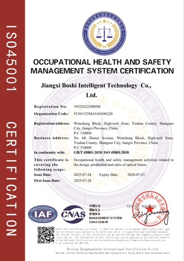 이는 Baoshi Intelligence가 광학 렌즈 연구 개발, 제조, 판매 및 애프터 서비스의 전체 체인을 포괄하는 표준화된 관리 시스템을 구축하여 고품질 제품과 서비스를 지속적으로 제공하기 위한 견고한 기반을 마련했음을 의미합니다.