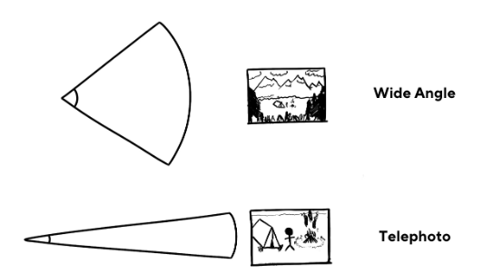 초점 거리가 더 짧은(mm 단위의 낮은 숫자) 렌즈는 더 넓은 장면을 포착할 수 있으며 일반적으로 광각 렌즈라고 합니다. 초점 거리가 길면(mm 단위로 높음) 망원 렌즈라고도 하며 더 큰 광학 배율과 더 먼 거리에서 이미지를 캡처할 수 있는 기능을 제공합니다.